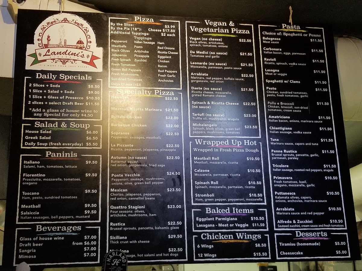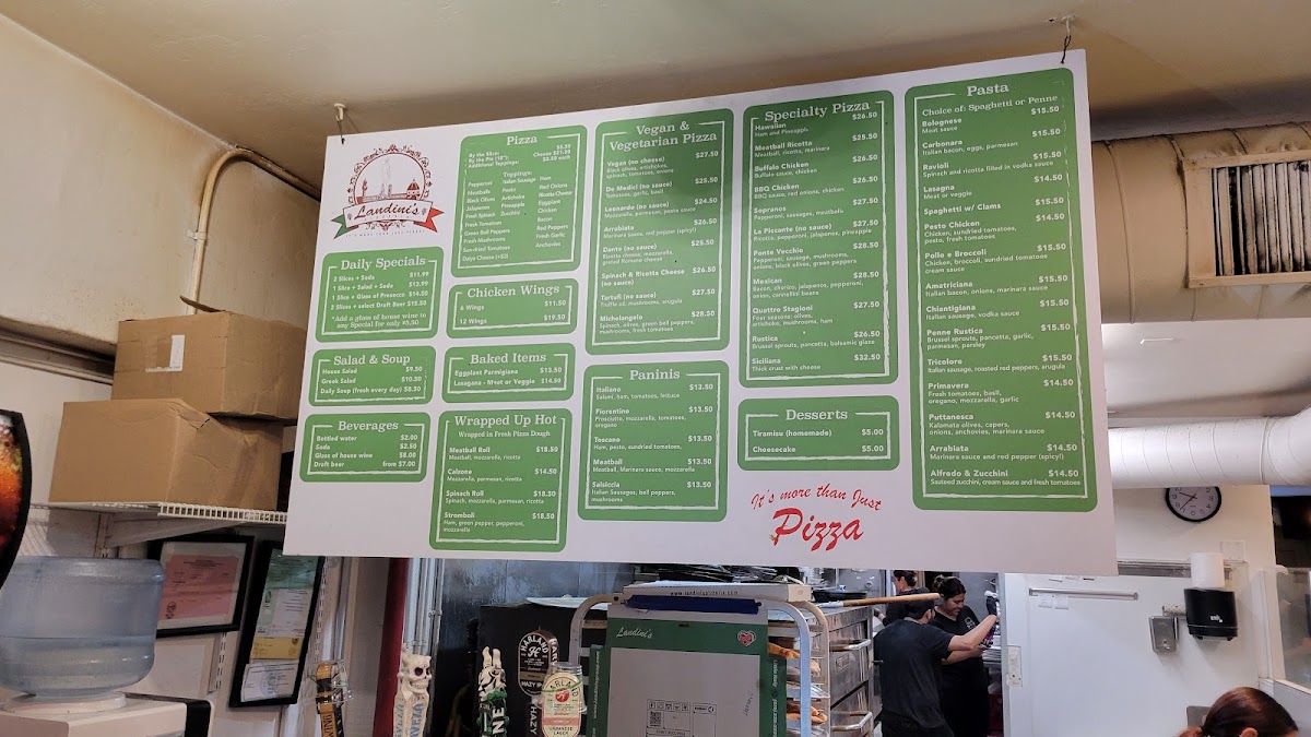 Welcome to Landini's Pizzeria, a delightful Italian eatery located at 1827 India St, San Diego, CA. This gem specializes in authentic pizza that transports you straight to the heart of New York. Customers rave about the perfectly crafted pizzas, featuring a well-balanced tomato sauce and cheese that creates a harmonious bite. The wings, available in flavors that range from classic to adventurous, serve as a sumptuous appetizer before diving into the sandwiches like the mouth-watering Meatball or Salsiccia.